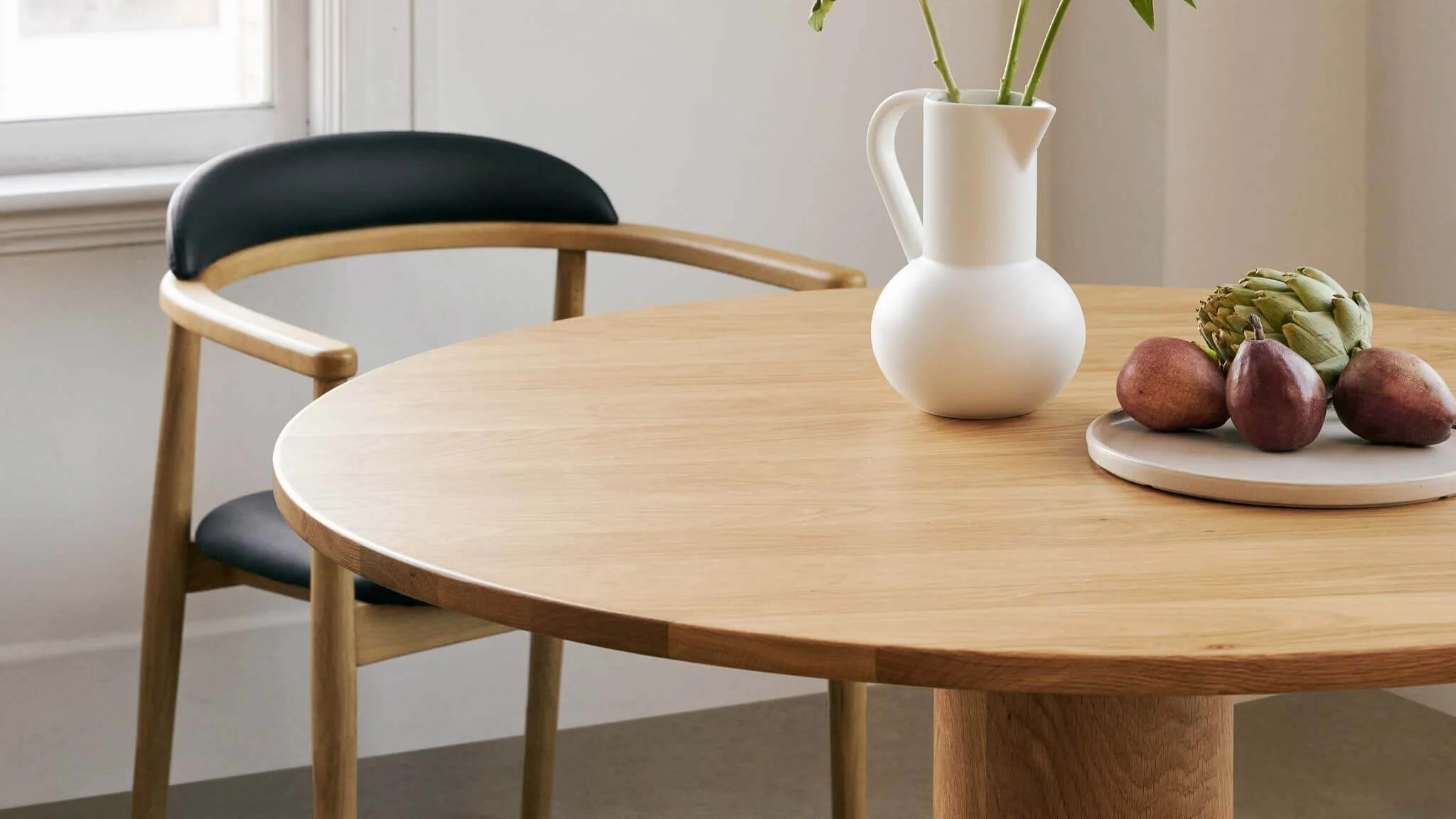 Equal parts beautiful and functional, the Formation Collection combines the warmth of natural wood and the utility of smart design. Made from solid oak with a sturdy steel base, this classic pedestal dining table is substantial enough to make a statement in any space.