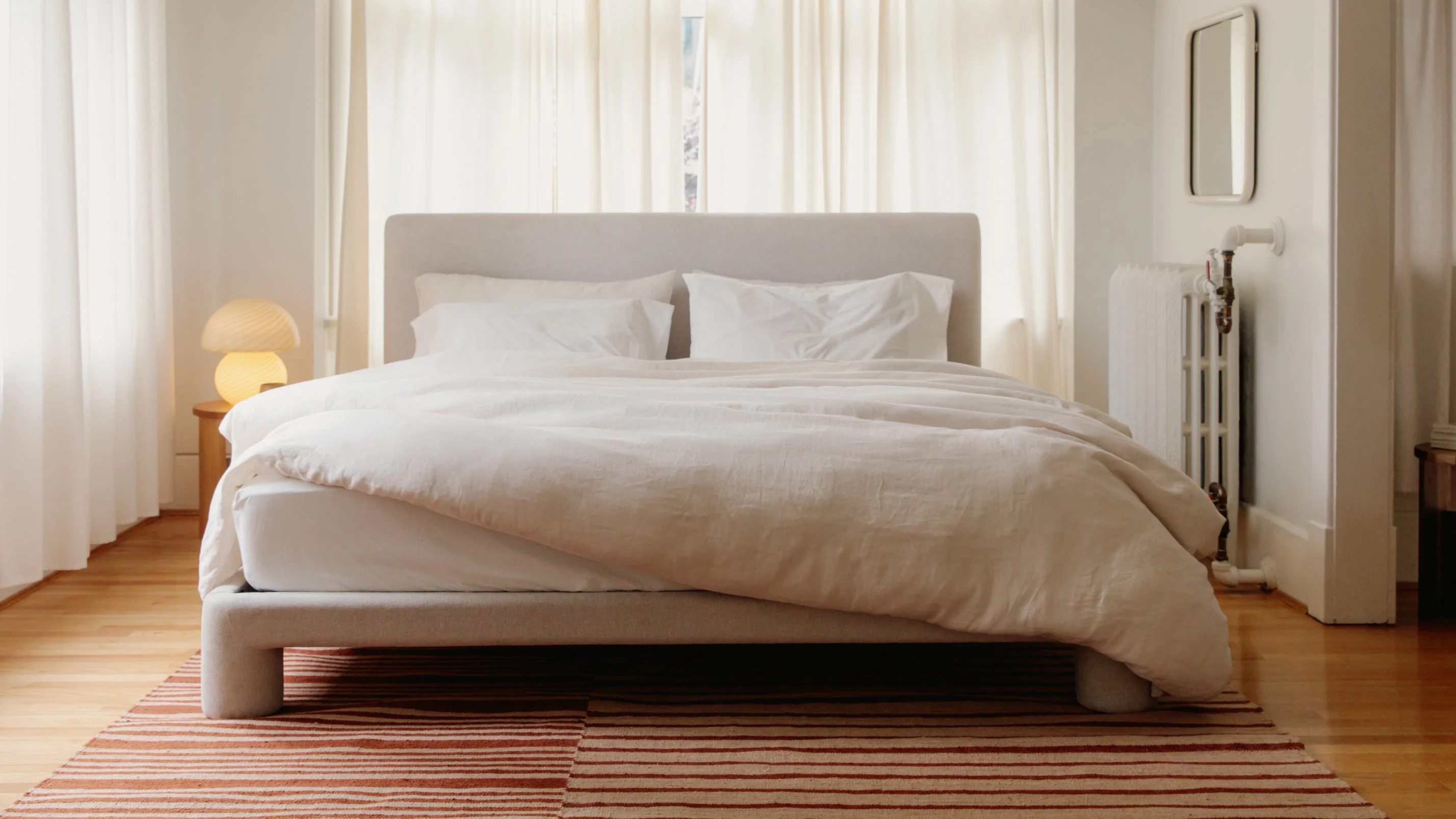 Goodnight, moon. Our Lunar bed has bold pedestal legs with slim side rails, making for beautifully balanced proportions. And, a low profile and compact footprint save space in your bedroom.