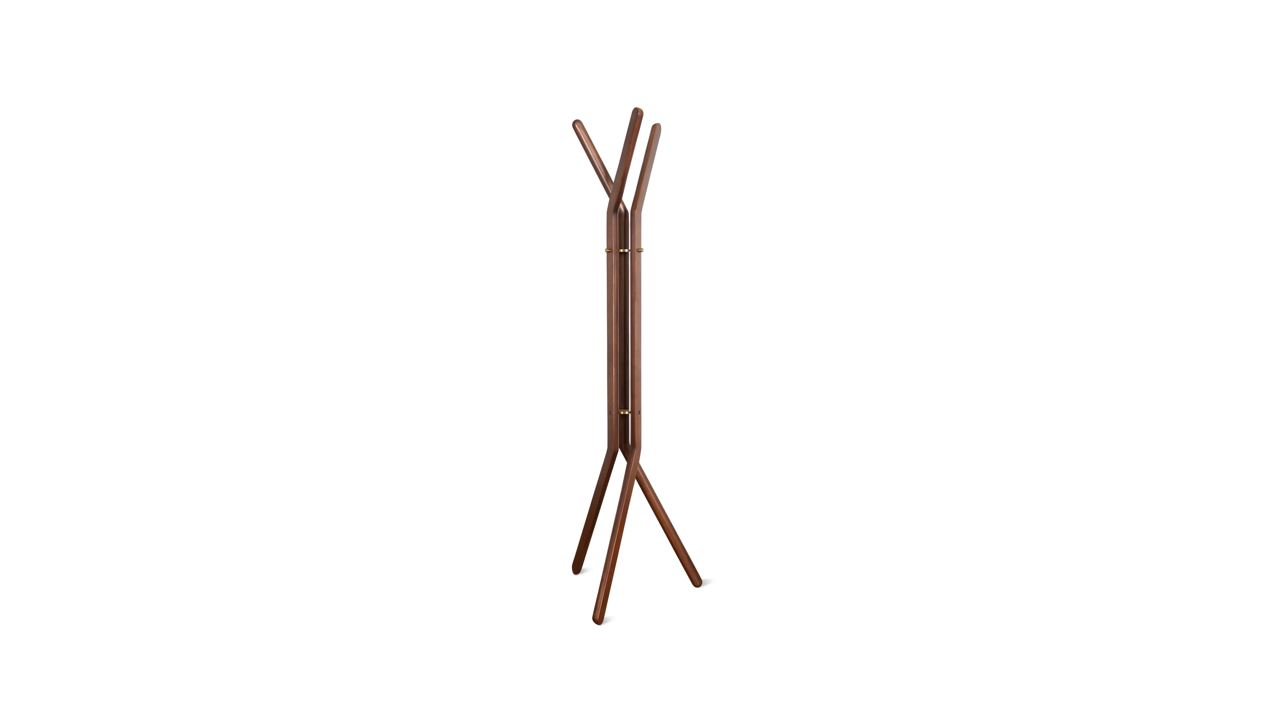 Proof that less really is more. Made with walnut-stained ash wood and brass stainless steel, the Unwind Coatrack makes a statement in any space.