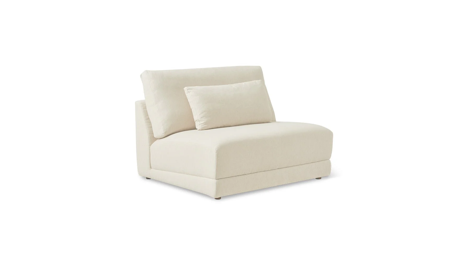 Our Wind Down Collection is the modern, tidy answer to your modular seating needs. Made with durable, stain-resistant fabric, this armless chair has clean lines, balanced proportions, and inviting feather-fiber cushions.